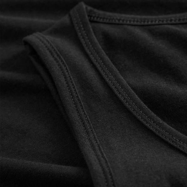 Einzigartiges Single-Jersey Tank Top mit Self-Fabric Kragen, hergestellt aus langstapeliger gekämmter Baumwolle. Die besonders glatte Oberfläche und der weich fallende Stoff verleihen dem Shirt ein einzigartiges, elastisches und seidiges Finish. Das T-Shirt ist schmal geschnitten und mit Seitennähten gefertigt.